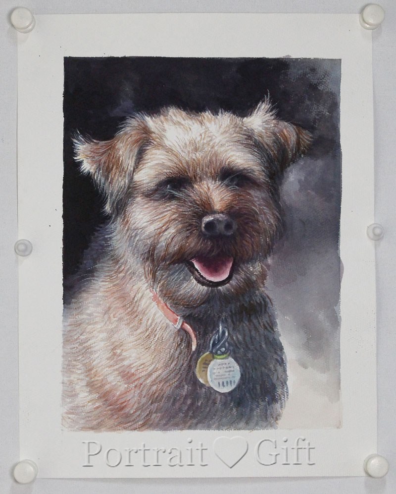 This is a watercolor painting for Pepper, a grey furry dog. Start now to give your doggie a cool portrait painting as well, oil on canvas, watercolor, pencil sketch etc.