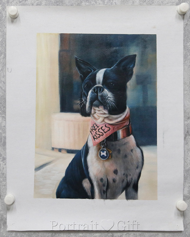 Dog oil portrait from photo. This dog is sitiing so quietly and with simple background, and it seems handsome.