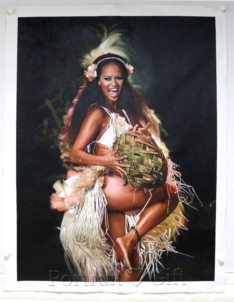 Lady portrait, hula-hula. This female portrait depicts the dynamic beauty of the lady. Do you have a dancing photo? Don’t hesitate and let one of our artists makes to an amazing painting artwork.